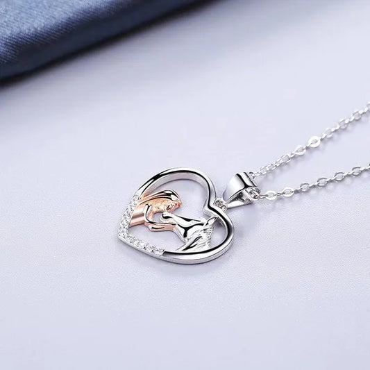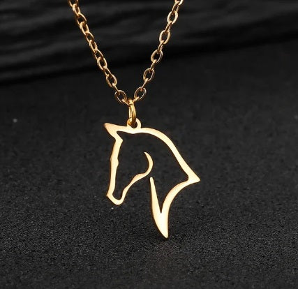 Collier 2 Tetes de Cheval en Coeur Doré.