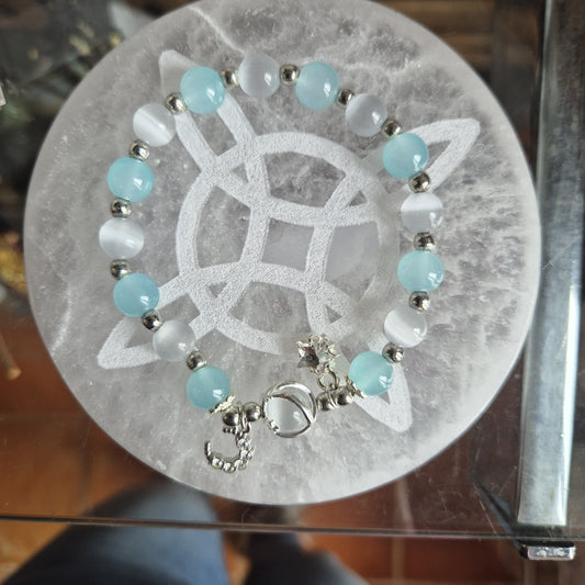 Bracelet avec Lune et Etoile avec Strass Blanc Turquoise