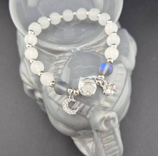 Bracelet avec Lune et Etoile avec Strass Blanc
