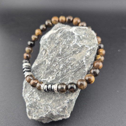 Bracelet Pierre Naturelle Oeil de Tigre et Obsidienne