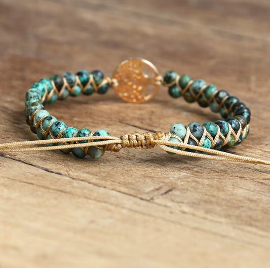 Bracelet Pierre Naturelle Tressé en Turqoise Africaine