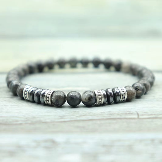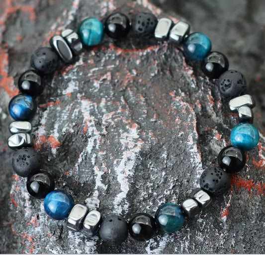 Bracelet Onyx Oeil de Tigre Bleu et Hematite