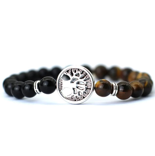 Bracelet Oeil de Tigre et Obsidienne & Arbre de Vie