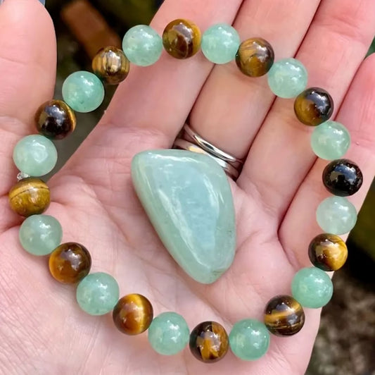 Bracelet en Pierre Naturelle Aventurine Verte et Œil de Tigre