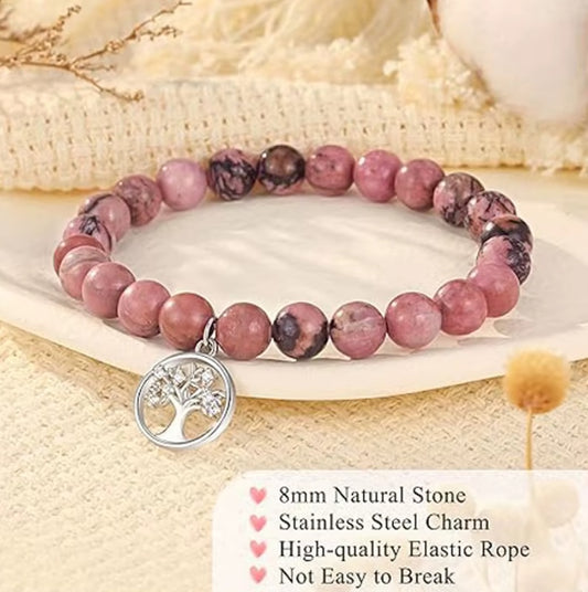 Bracelet Pierres Rhodonite & Arbre de Vie