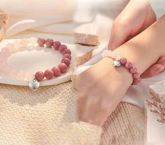 Bracelet rose Quartz et Rhodonite avec Coeur