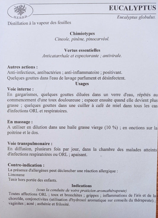 Eucalyptus Globulus Huile Essentielle HEBBD 20ml