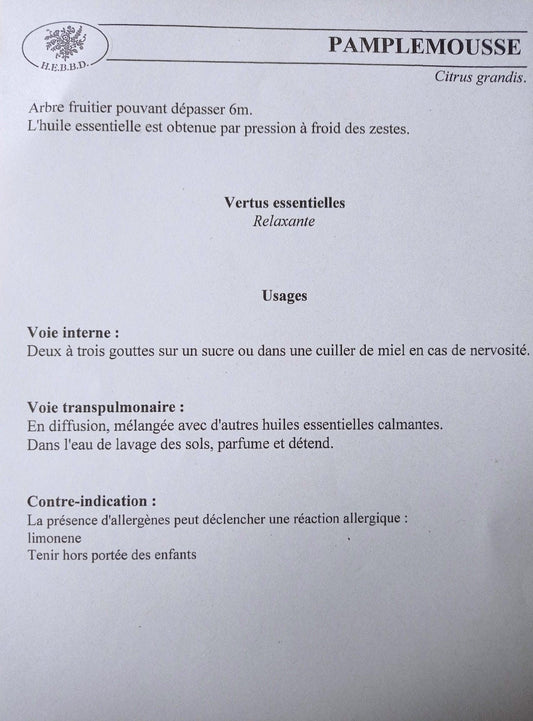 Pamplemousse Huile Essentielle HEBBD 20ml