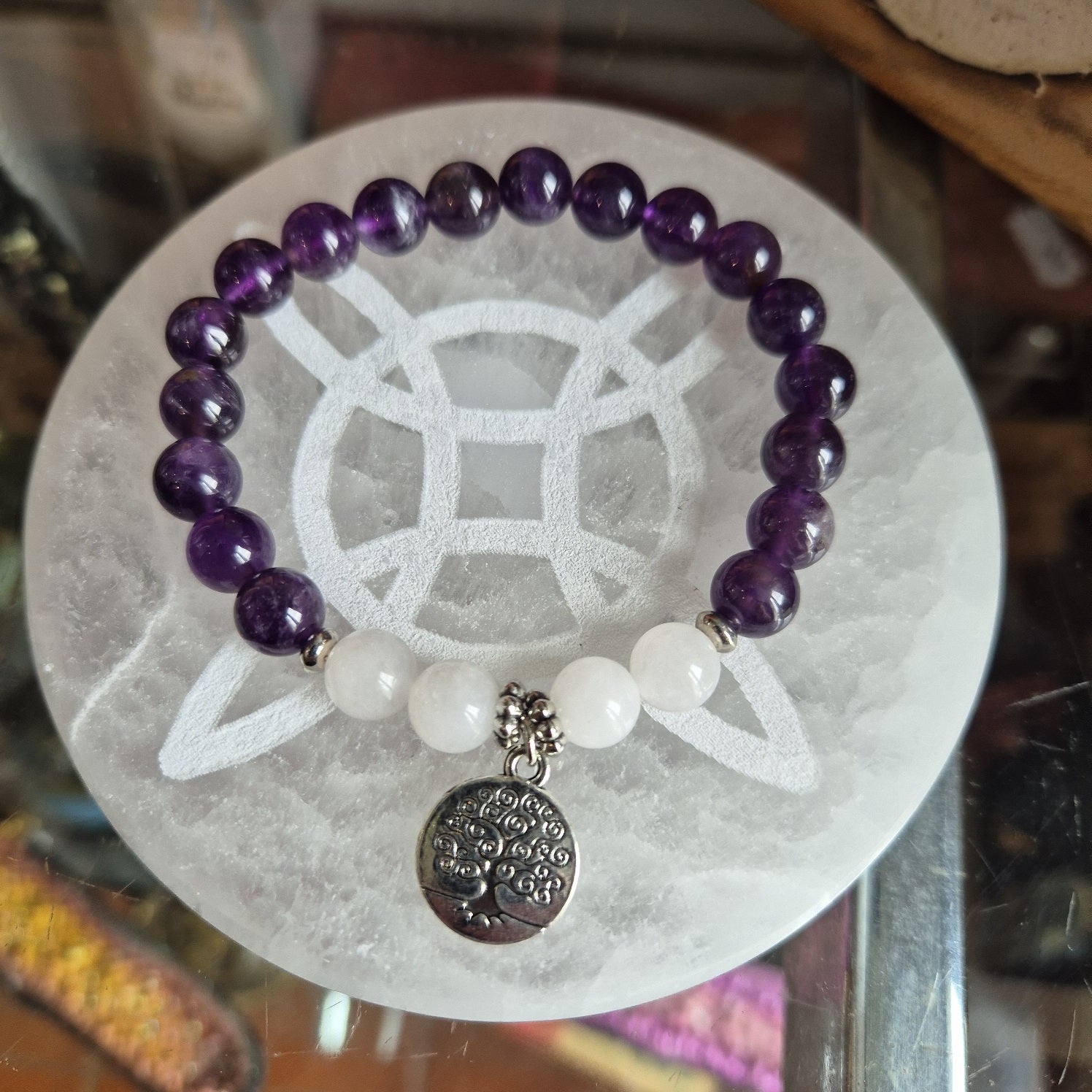 Bracelet Amethyste, Jade Blanc et Arbre de Vie