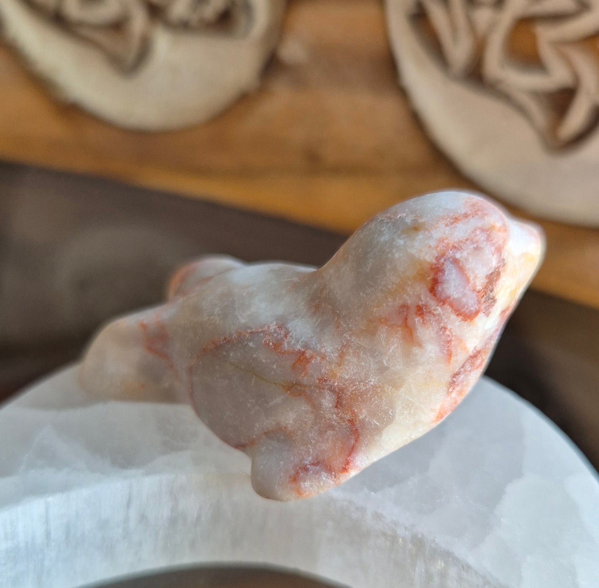 Ce phoque en jaspe rouge filetée incarne la vitalité et la stabilité. Ses nuances chaudes et naturelles évoquent la terre et l’énergie vitale. Parfait pour apporter une touche de couleur et de force à votre intérieur tout en profitant des vertus équilibrantes du jaspe.