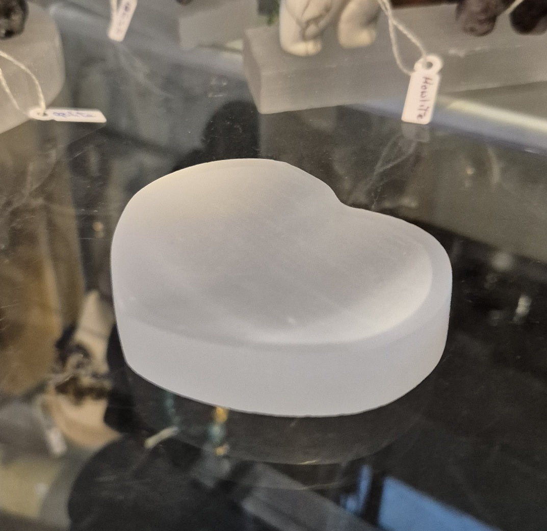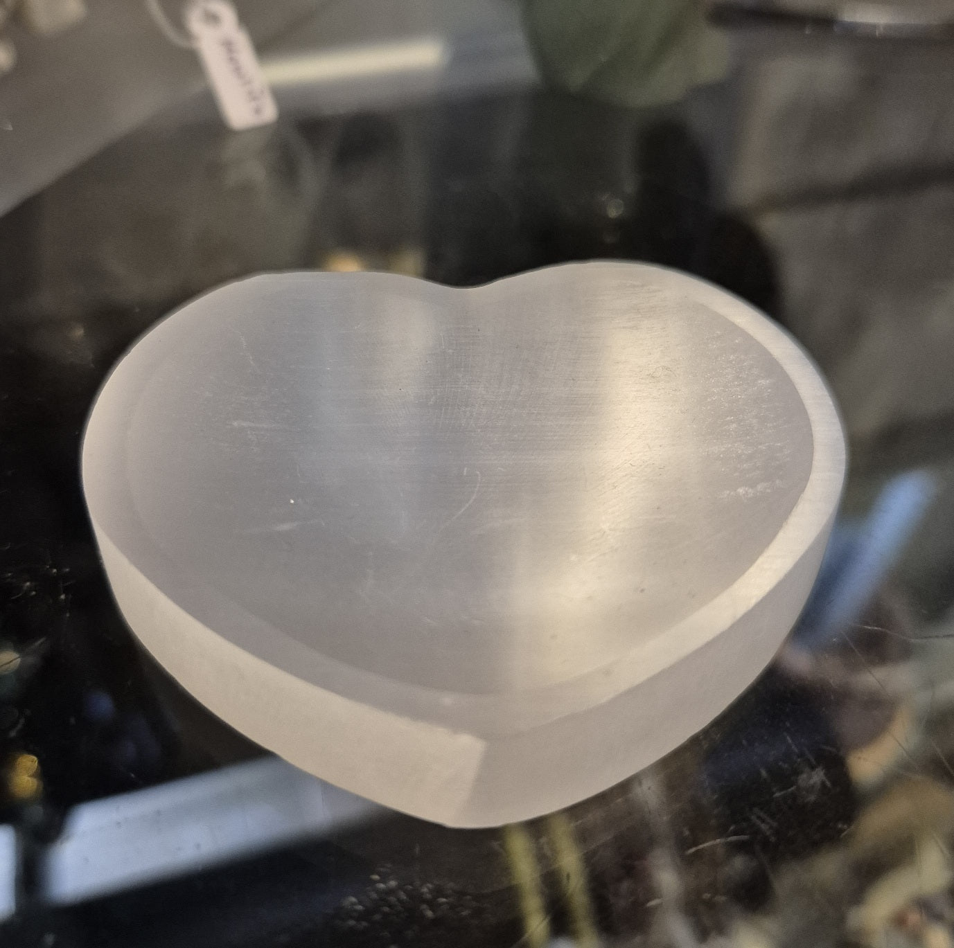 ❤️ Petit Bol Cœur en Sélénite – Forme Creuse - Ce petit bol en forme de cœur, taillé dans de la sélénite naturelle, est parfait pour déposer vos bijoux, pierres ou petits objets précieux. La sélénite est réputée pour ses propriétés purifiantes et apaisantes, idéale pour recharger vos cristaux et instaurer une ambiance sereine dans votre espace. Sa forme en cœur symbolise l’amour et l’harmonie, en faisant un cadeau délicat et chargé de sens.
